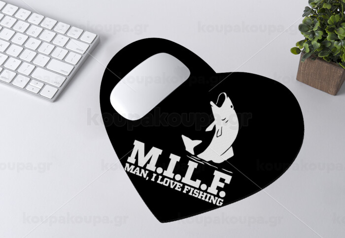 M.I.L.F. Mam i love fishing, Mousepad heart 23x20cm