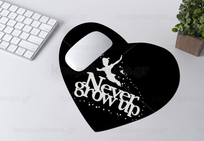 Peter pan, Never Grow UP, Mousepad heart 23x20cm
