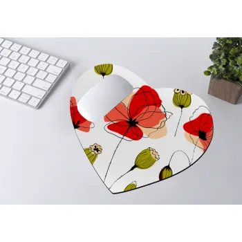 Red poppy flowers papaver, Mousepad heart 23x20cm
