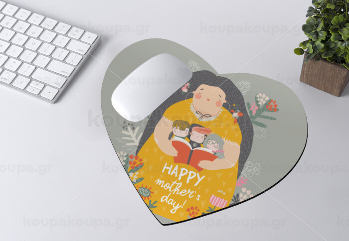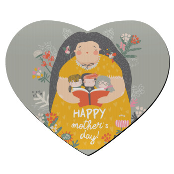 Cute mother reading book, happy mothers day, Mousepad heart 23x20cm