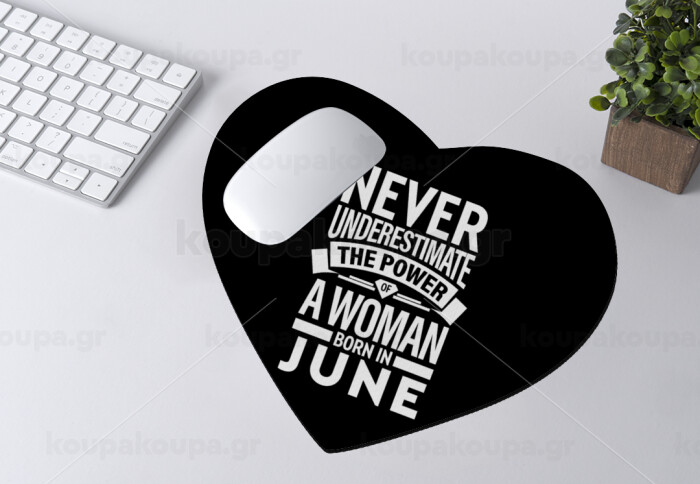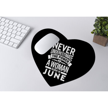 Never Underestimate the poer of a Woman born in..., Mousepad heart 23x20cm