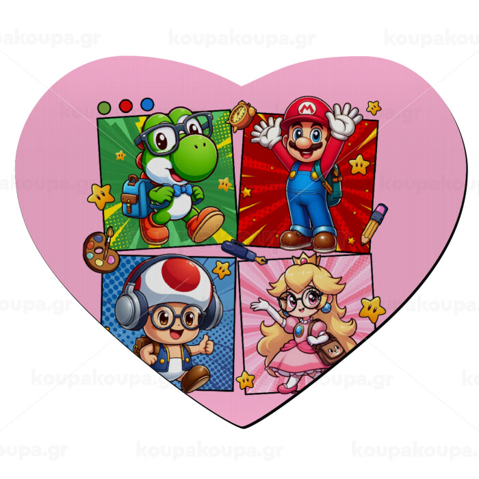 Back to the School Mario & Friends, Mousepad heart 23x20cm