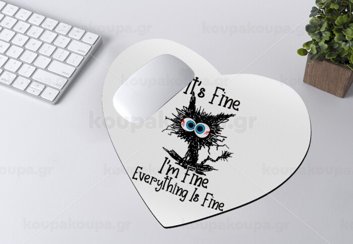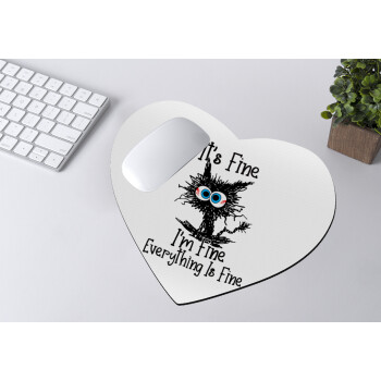 Cat, It's Fine I'm Fine Everything Is Fine, Mousepad heart 23x20cm