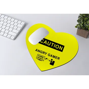 Caution, angry gamer!, Mousepad heart 23x20cm