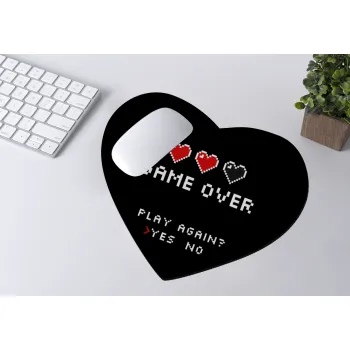 GAME OVER, Play again? YES - NO, Mousepad heart 23x20cm