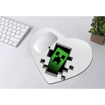 Minecraft creeper, Mousepad heart 23x20cm