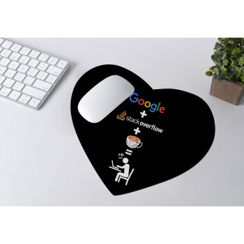 Google + Stack overflow + Coffee, Mousepad heart 23x20cm