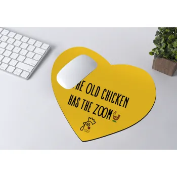 The old chicken has the zoom, Mousepad heart 23x20cm