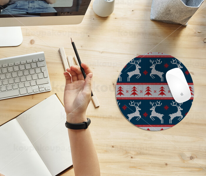 Deer knitted blue, Mousepad Round 20cm