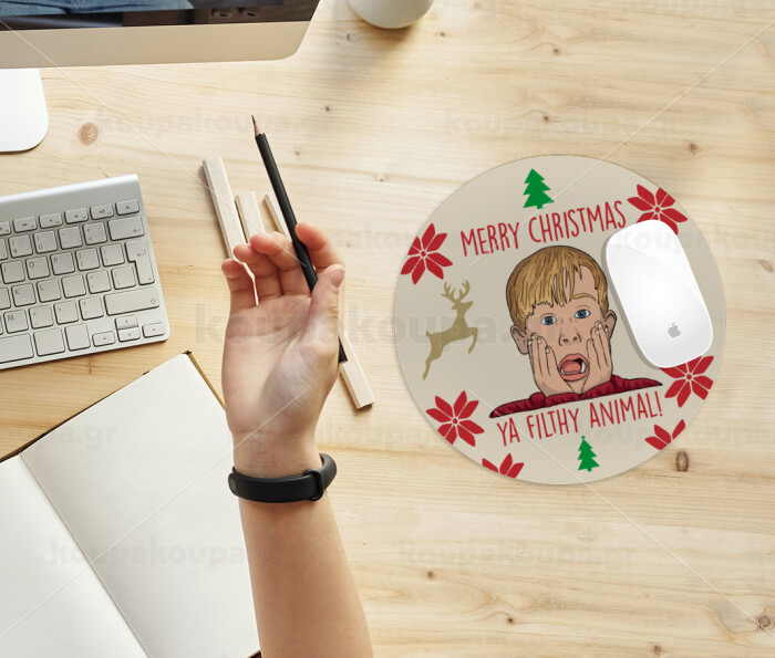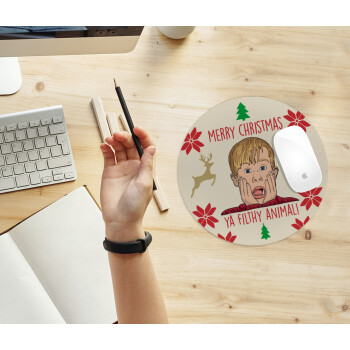 home alone, Merry Christmas ya filthy animal, Mousepad Round 20cm