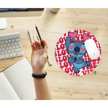 Lilo & Stitch Love vibes, Mousepad Round 20cm