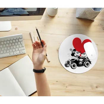 Mickey & Minnie love car, Mousepad Round 20cm