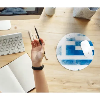 Ελληνική σημαία watercolor, Mousepad Round 20cm