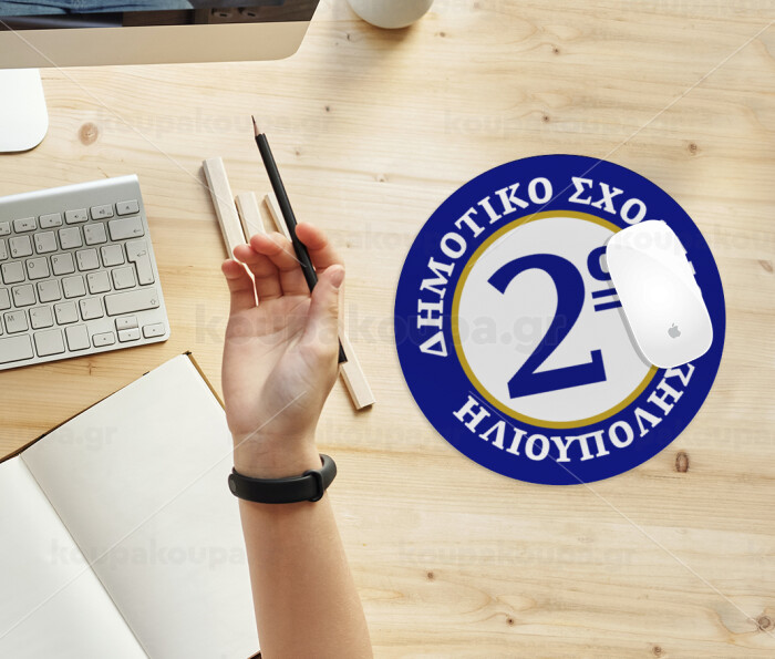 Έμβλημα Σχολικό μπλε/χρυσό, Mousepad Round 20cm