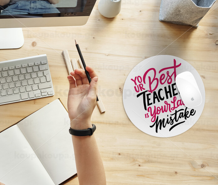Typography quotes your best teacher is your last mistake, Mousepad Round 20cm