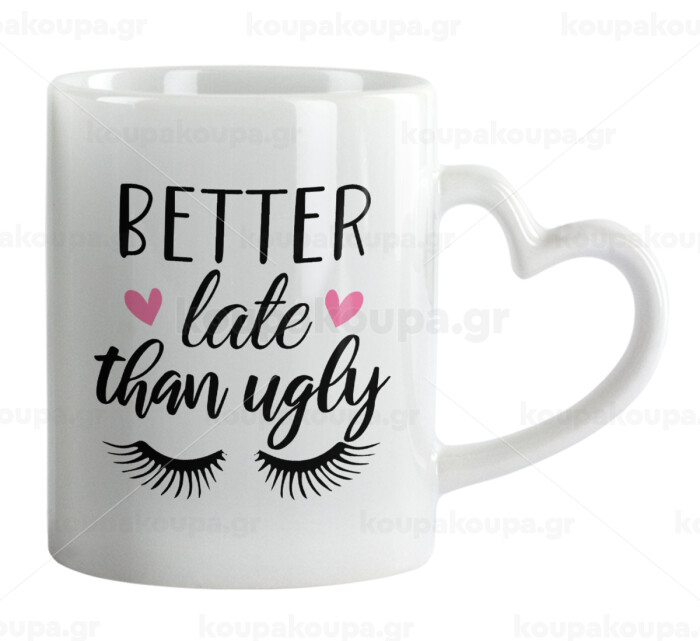 Better Late than ugly hearts, Mug heart handle, ceramic, 330ml