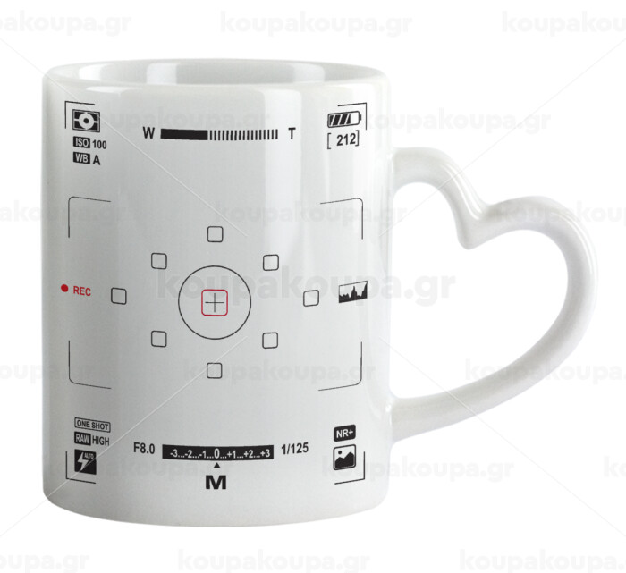 Camera viewfinder, Mug heart handle, ceramic, 330ml