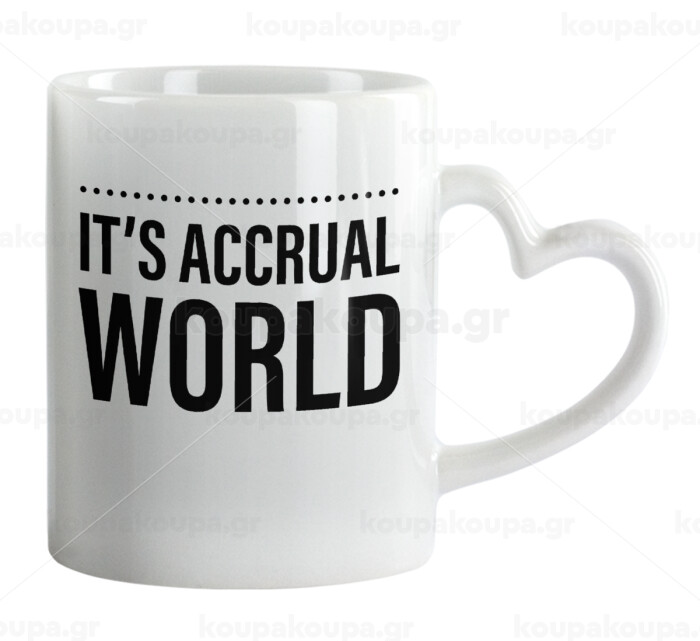 It's an accrual world, Mug heart handle, ceramic, 330ml