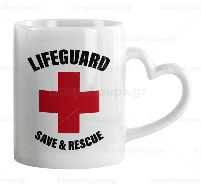 Lifeguard Save & Rescue, Mug heart handle, ceramic, 330ml