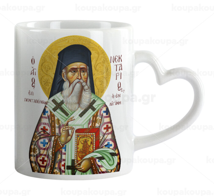Saint Nektarios, Mug heart handle, ceramic, 330ml