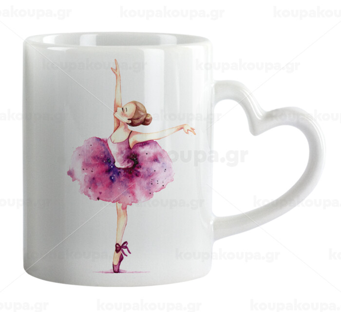 Ballerina watercolor, Mug heart handle, ceramic, 330ml