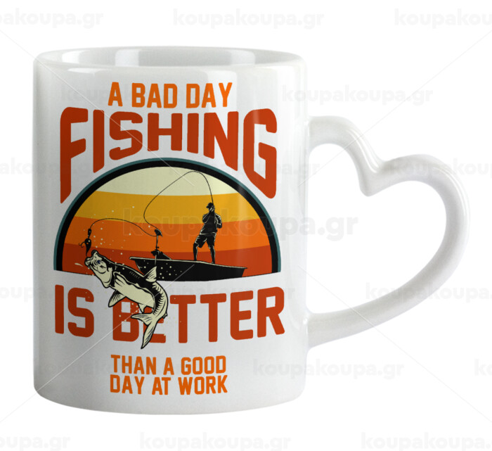 A bad day FISHING is better than a good day at work, Mug heart handle, ceramic, 330ml
