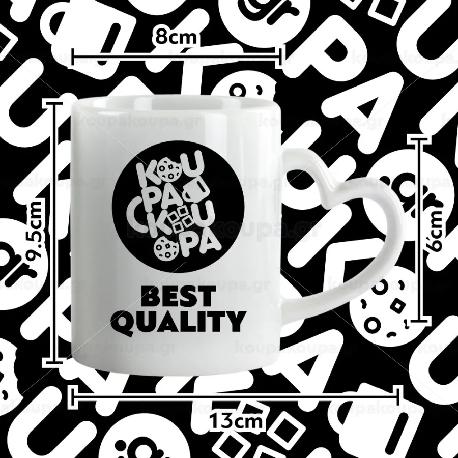 Mug with handle in the shape of a heart, glossy, excellent quality, with bright colors. Dishwasher safe, microwave safe. Use it for hot and cold drinks.