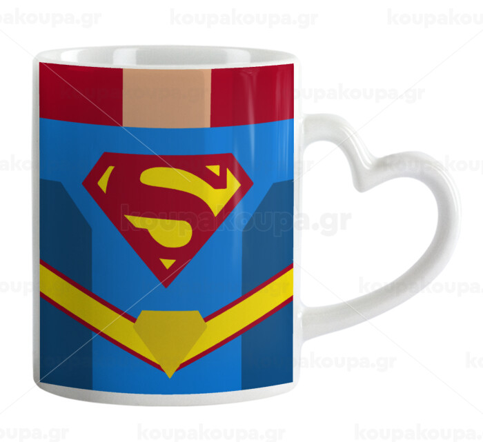 Superman flat, Mug heart handle, ceramic, 330ml