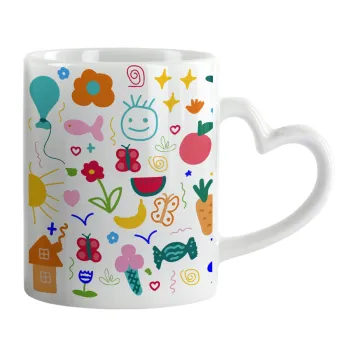 Παιδική φαντασία, Mug heart handle, ceramic, 330ml