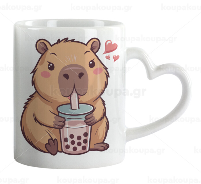 Capybara Bubble Tea, Mug heart handle, ceramic, 330ml