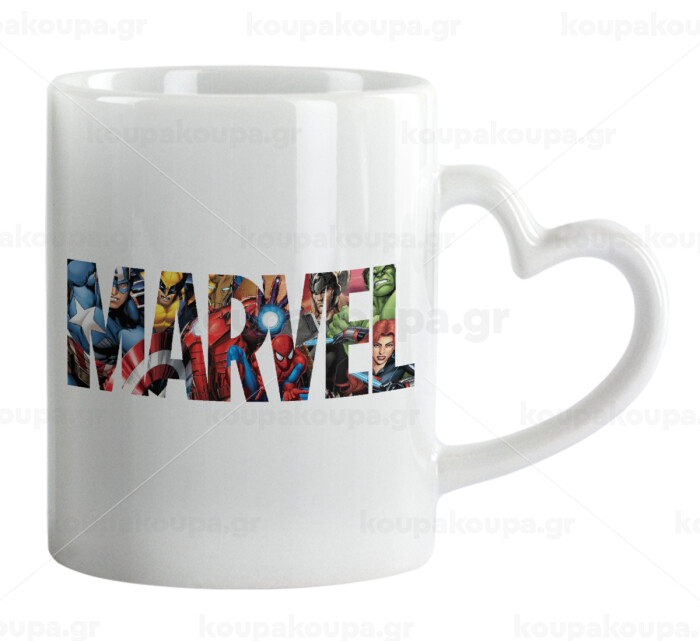 MARVEL characters, Mug heart handle, ceramic, 330ml