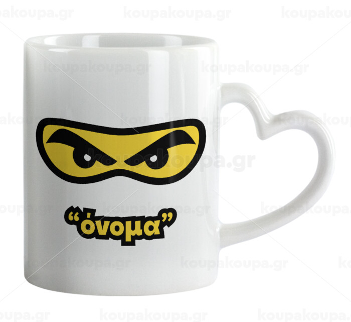 Ninja Eyes με όνομα, Mug heart handle, ceramic, 330ml