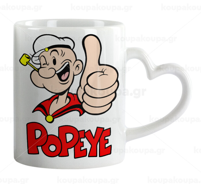 Popeye the sailor man, Mug heart handle, ceramic, 330ml