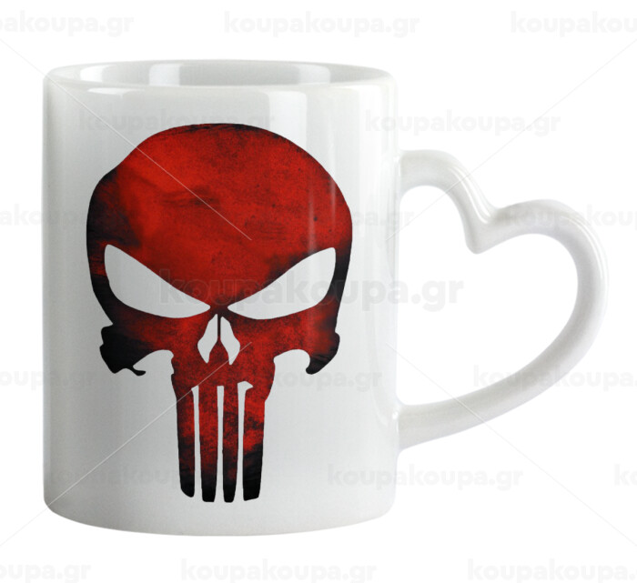Red skull, Mug heart handle, ceramic, 330ml