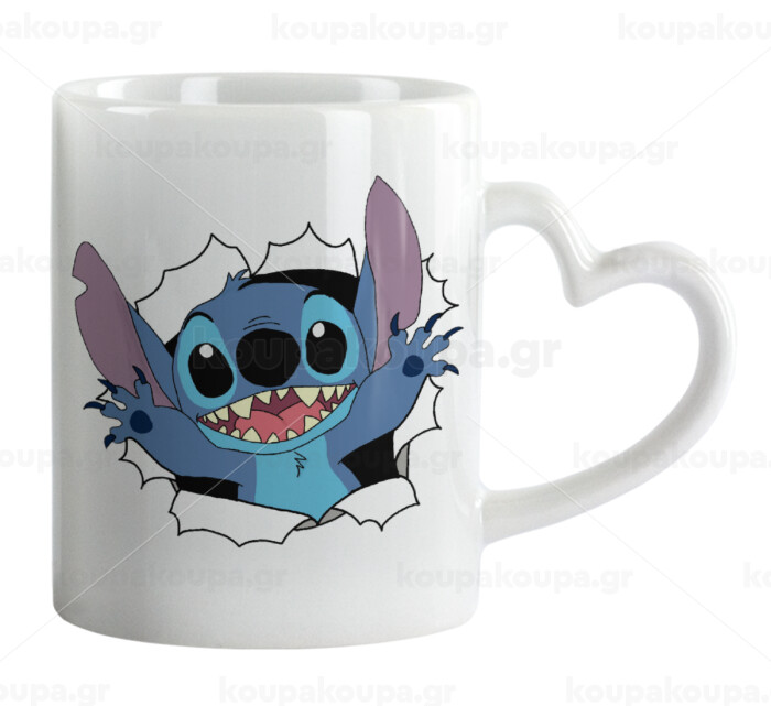 Stitch hello!!!, Mug heart handle, ceramic, 330ml