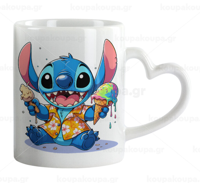 Stitch Ice cream, Mug heart handle, ceramic, 330ml