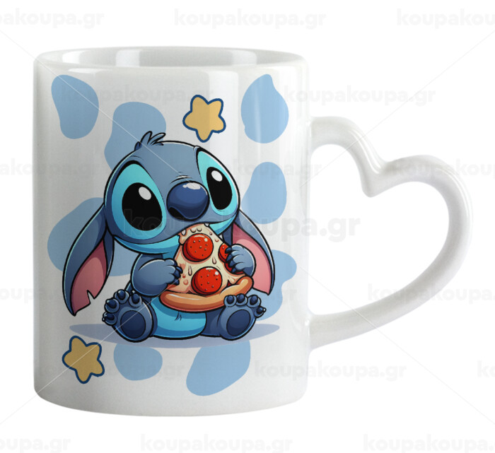 Stitch Pizza, Mug heart handle, ceramic, 330ml