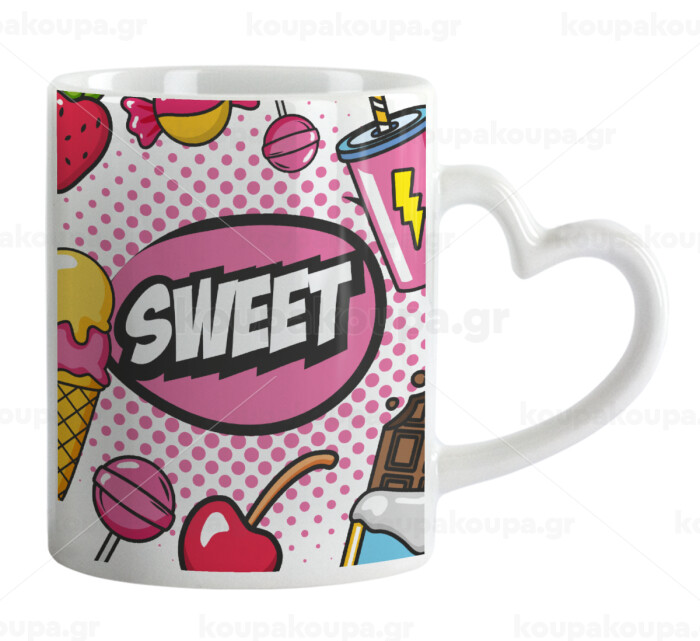 Mug with handle in the shape of a heart, glossy, excellent quality, with bright colors. Dishwasher safe, microwave safe. Use it for hot and cold drinks.