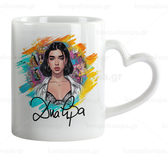 Dua lipa, Mug heart handle, ceramic, 330ml
