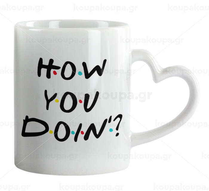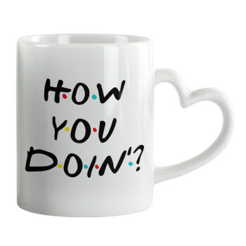 Friends How You Doin'?, Mug heart handle, ceramic, 330ml
