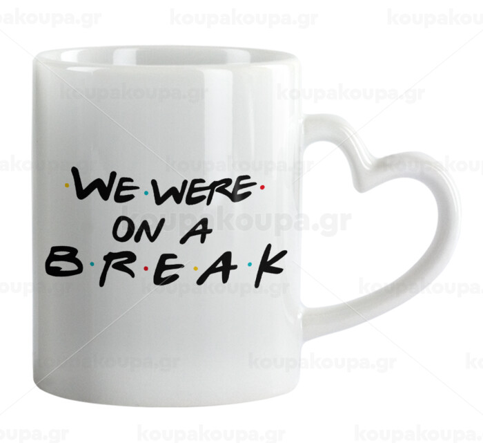 Friends we were on a break, Mug heart handle, ceramic, 330ml