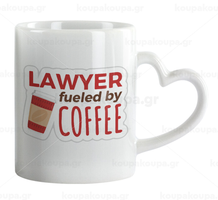 Lawyer fueled by coffee, Mug heart handle, ceramic, 330ml