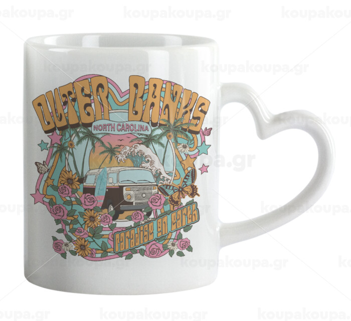 Outerbanks paradise on earth, Mug heart handle, ceramic, 330ml