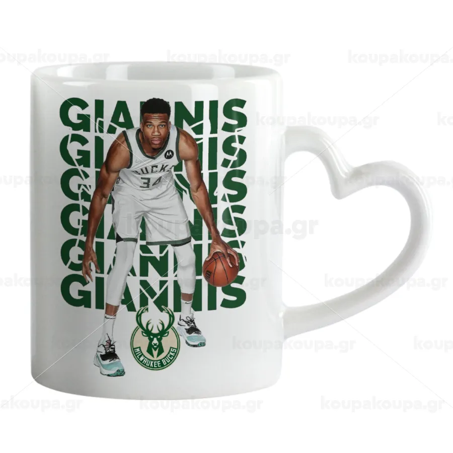 Giannis Antetokounmpo, Mug heart handle, ceramic, 330ml