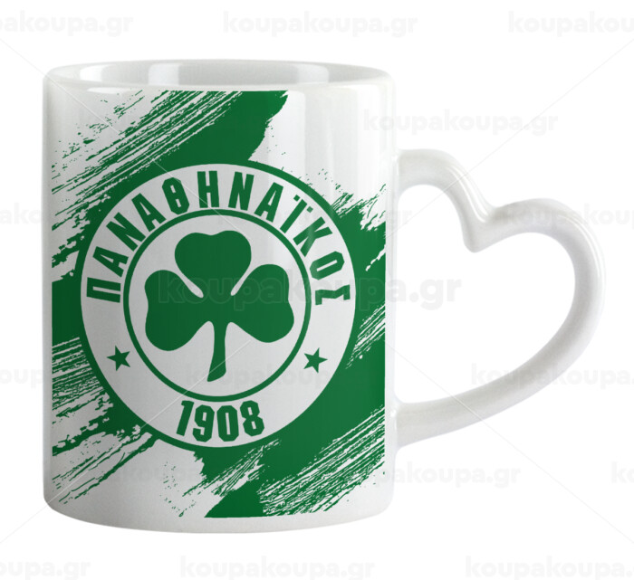 Π.Α.Ο., Mug heart handle, ceramic, 330ml
