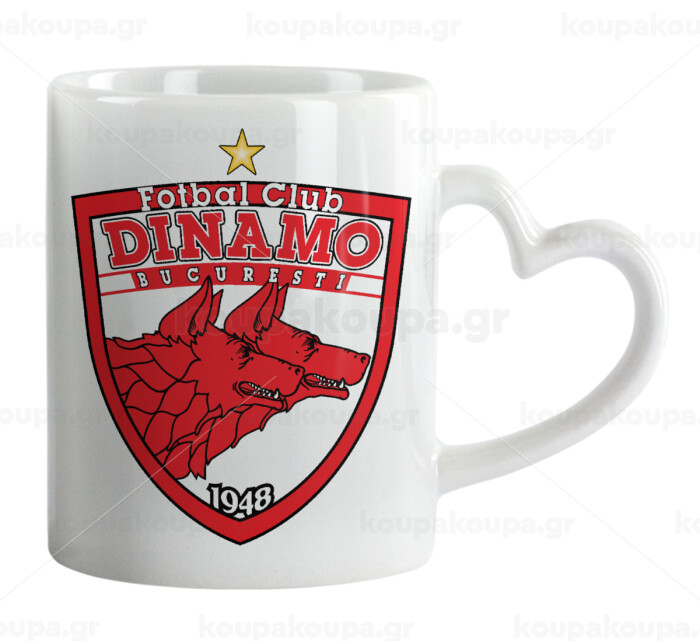 FC Dinamo Bucuresti, Mug heart handle, ceramic, 330ml