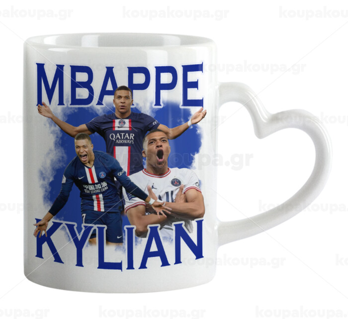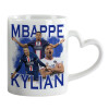 Kylian Mbappé, Mug heart handle, ceramic, 330ml