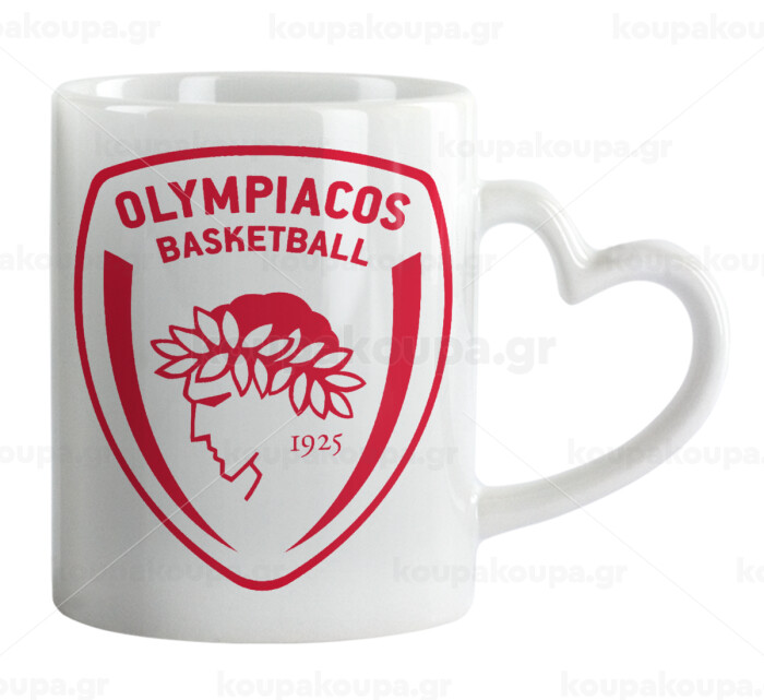 Olympiacos B.C., Mug heart handle, ceramic, 330ml