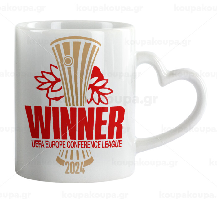 Europa Conference League WINNER, Mug heart handle, ceramic, 330ml