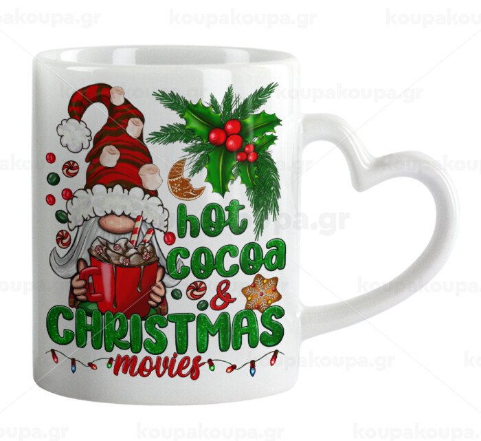 Hot cocoa and Christmas movies, Mug heart handle, ceramic, 330ml